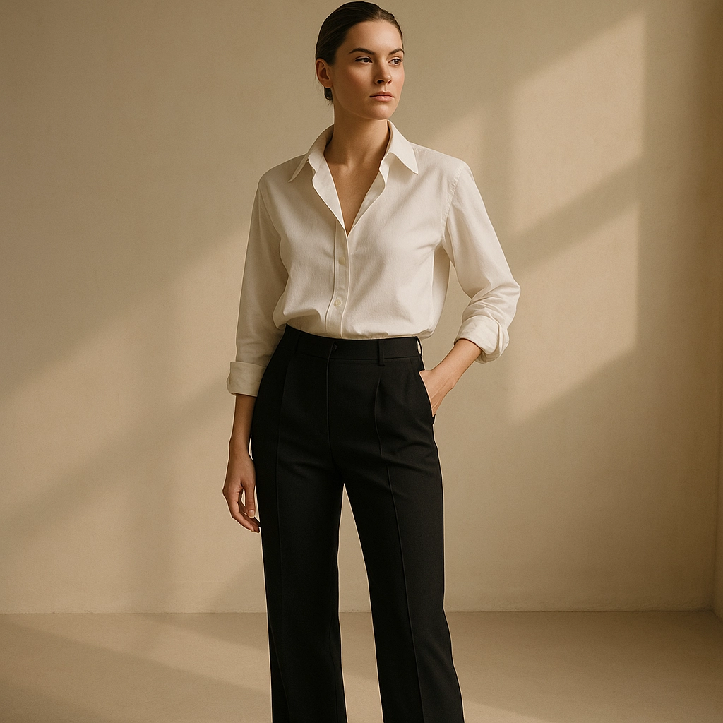 Un básico deja de ser simple cuando se lleva con confianza. Una camisa blanca, un pantalón negro o un blazer bien estructurado pueden convertirse en protagonistas cuando los usas como lienzo de tu expresión personal.